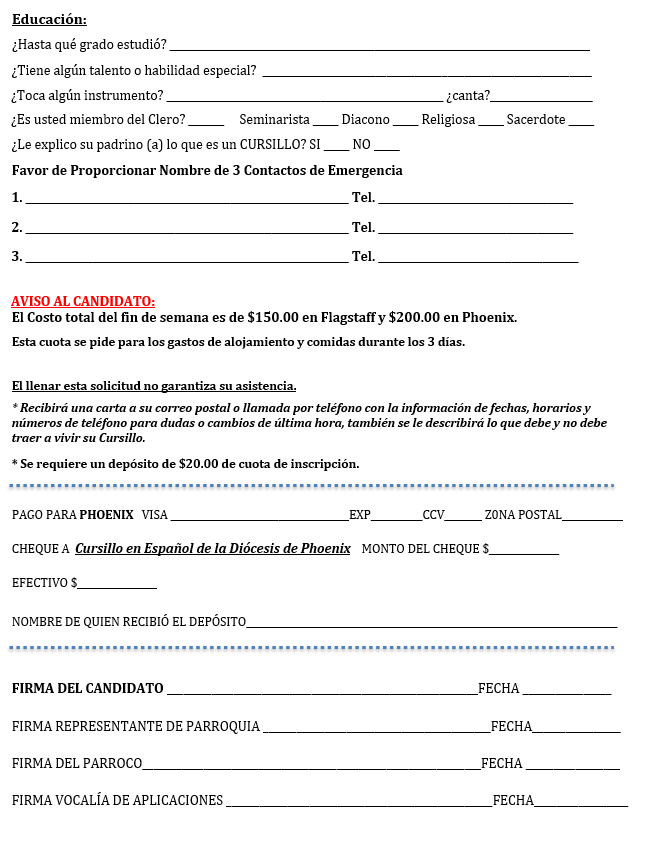 Padrinos pueden imprimir la aplicación y llenarla con sus condidatos para hacerla llegar a su Representante de Parroquia